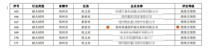 10月26日,在河南省生態(tài)環(huán)境廳印發(fā)了《關于發(fā)布重污染天氣重點行業(yè)績效評級結果的公告》(〔2020〕年11號)中,鄭州榮盛窯爐耐火材料有限公司獲評“績效引領性企業(yè)”,這是繼公司榮獲“高新技術企業(yè)”、省級“科技型中小企業(yè)”后,再添喜訊。