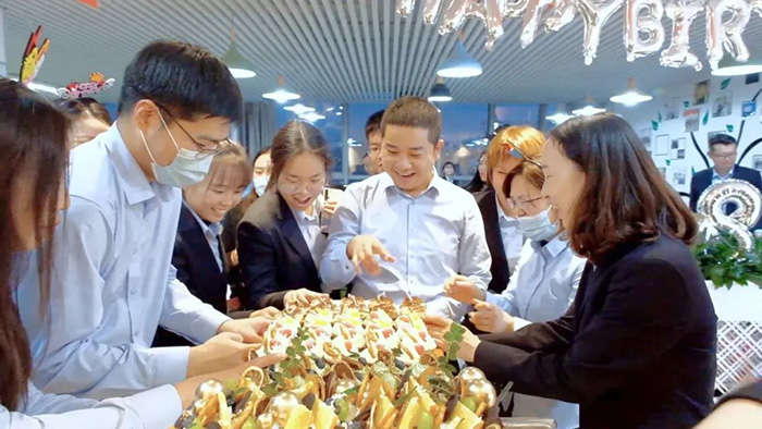 每一次的生日會都少不了集團(tuán)領(lǐng)導(dǎo)的真摯祝福,在大家熱烈的掌聲中,集團(tuán)董事長楚科奇、總經(jīng)理王海軍親臨現(xiàn)場,為每一位壽星送上精美的禮品和最真摯的祝福。