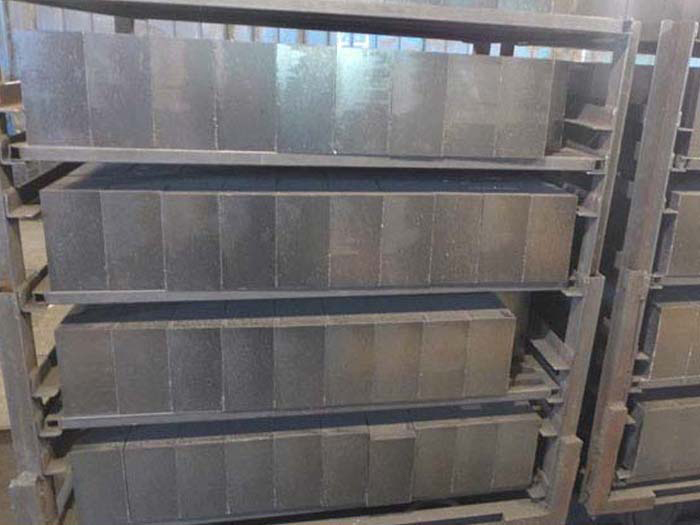 鎂鉻磚以氧化鎂(MgO)和三氧化鉻(Cr2O3)為主要成分,方鎂石和尖晶石為主要礦物組分的耐火材料制品。這類磚耐火度高,高溫強(qiáng)度大,抗堿性渣侵蝕性強(qiáng),熱穩(wěn)定性優(yōu)良,對(duì)酸性渣也有一定的適應(yīng)性。制造鎂鉻磚的主要原料是燒結(jié)鎂砂和鉻鐵礦。鎂砂原料的純度要盡可能高,鉻鐵礦化學(xué)成分的要求為:Cr2O3:30~45%,CaO:≤1.0~1.5%。