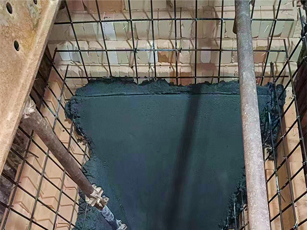 青;剞D(zhuǎn)窯耐火澆注料施工現(xiàn)場(chǎng)